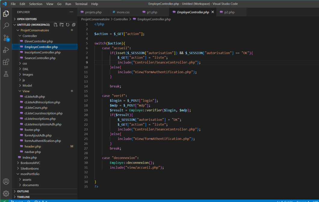 Le conservatoire ‘Musique Pour Tous’ demande la création d’un Intranet en PHP permettant