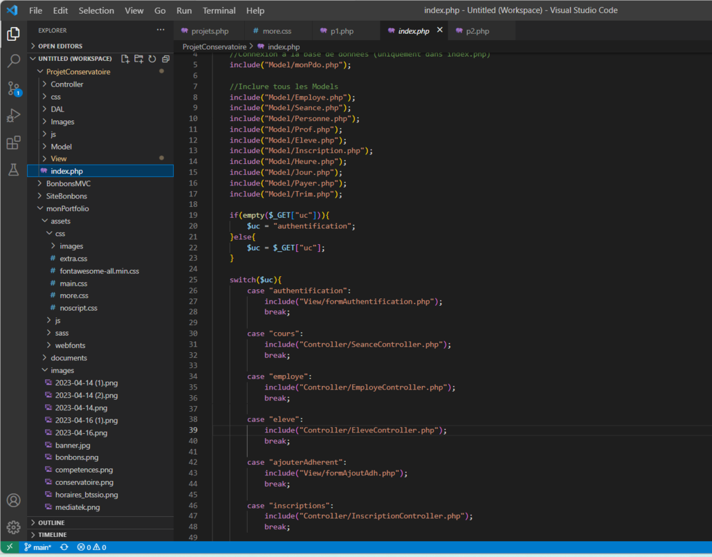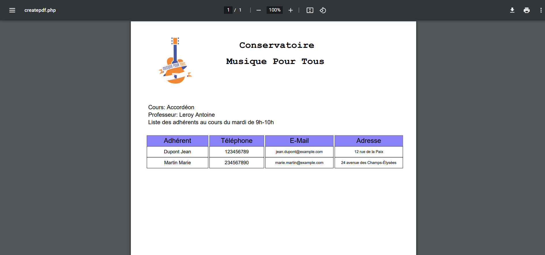 Le conservatoire ‘Musique Pour Tous’ demande la création d’un Intranet en PHP permettant