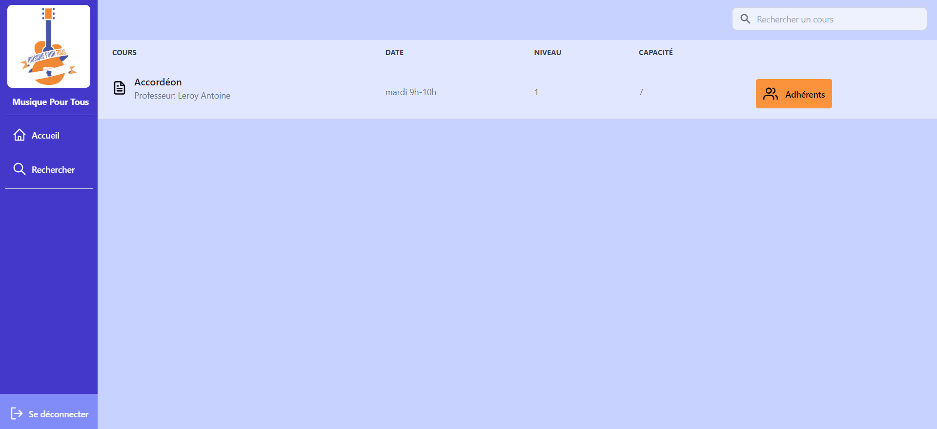 inscriptions et une interface professeur qui lui permet d’accéder à la liste d’adhérents à ses